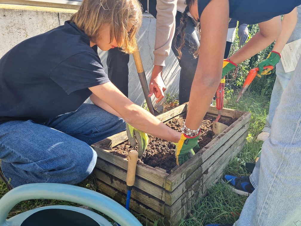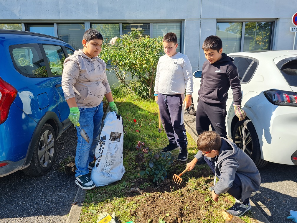 La semaine dernière, nous avons planté un rosier sur le parking des professeurs, nous avons aussi planté un artichaut derrière la cantine. Entre le portail et la porte d’entrée coté élève, nous avons planté 15 bulbes de tulipes et 20 bulbes de crocus. Nous espérons que les bulbes feront des fleurs entre février et mai.